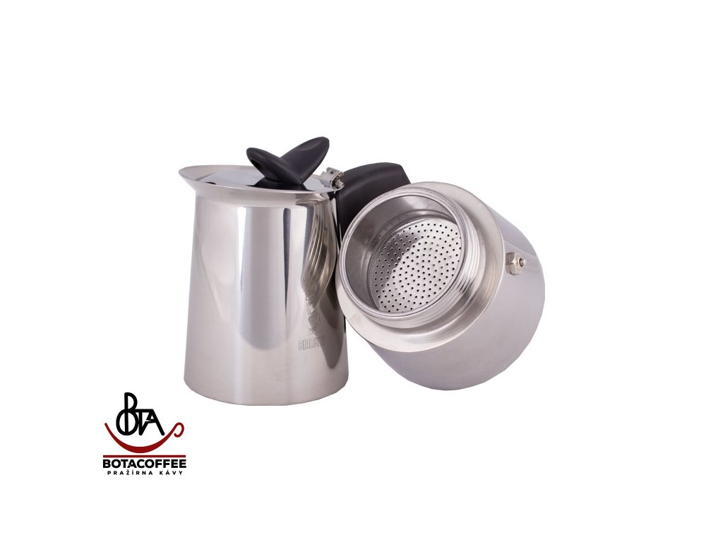 Moderní kávovar Bialetti Musa z nerezové oceli od legendárního italského výrobce Bialetti. Vhodné i pro indukční ohřev. Varianta pro 10 porcí kávy.