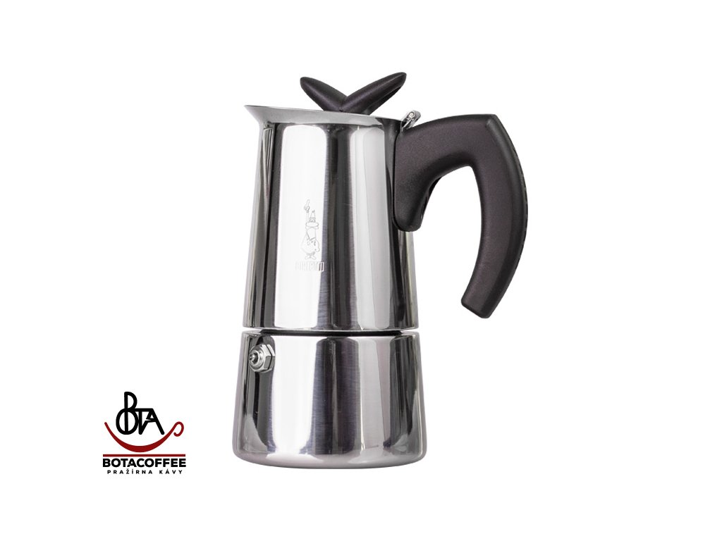 Moderní kávovar Bialetti Musa z nerezové oceli od legendárního italského výrobce Bialetti. Vhodné i pro indukční ohřev. Varianta pro 4 porce kávy.