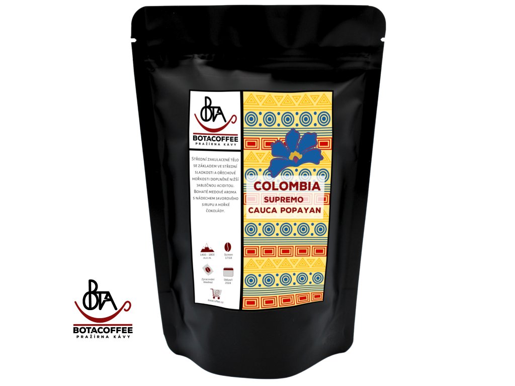 Colombia Supremo Cauca PopayanKolumbie je země mnoha tváří. S pobřežím u Atlantského i Tichého oceánu, s Amazonským pralesem i sněhem pokrytými vrcholky And má každá oblast zcela jedinečný charakter. V celkové produkci kávy je třetí na světě (za Brazílií a Vietnamem), ale drží světové prvenství v produkci prané výběrové arabiky. Je také jedinečná v tom, že – díky její velikosti a rozmanitosti terénů a mikroklimat – se v každém ročním období v některé části země sklízí káva.