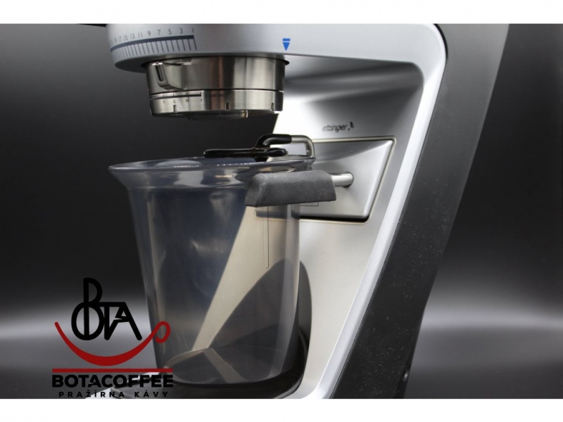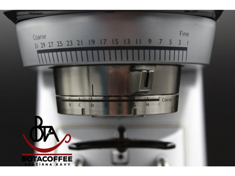 U nás v BotaCoffee jsme si tento mlýnek zamilovali. Možnost vážit kávu a zároveň mlít do páky je skvělá. Hodně se nám líbilo, že nastavení hrubosti je popsané jak čísly v případě makro nastavení tak i písmeny v případe mikro nastavení, které je bezkrokové. Pokud máte seřízenou hrubost mlýnku na espresso a chcete si kávu vychutnat na filtru, stačí, když si zapamatujete číslo a písmeno ideální hrubosti na espresso. Až si pomelete kávu na filtr tak mlýnek zpět nastavíte na tyto hodnoty a máte seřízeno zpět na espresso. Potěšili nás ale i maličkosti, třeba opravdu dlouhý přívodní kabel s koncovkou jaká se používá u PC. Nebo velmi snadná výměna kávy i při plném zásobníku. Otočíte kličkou (foto níže) a zásobník uzavřete. Následně odemelete zbytek (cca 8 g). Celý zásobník sundáte a kávu můžete snadno vyměnit. Následně stačí pomlet cca 4 g kávy na pročištění mlýnku a nová káva je připravená. Takto snadná změna kávy je vážně super věc.