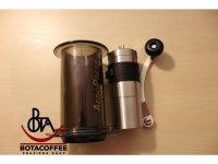 Tento mlýnek nás v BotaCoffee zaujal svoji robustností a přitom minimalistickou elegancí. Jedná se o menší model mlýnku Porlex Tall. Menší je ale jen na výšku, mlecí mechanizmus je totožný.Velmi dobře je vyřešen přenos síly při mletí z kličky na mlecí kameny.